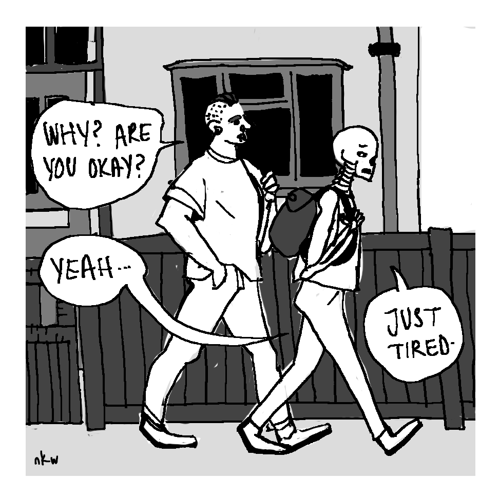 Skullo is a story about the ‘Other’. A skeleton in a world that punishes bones for being just that, Skullo tip-toes through the monotony and refuses to react. But, more than anything else, perhaps a skeleton needs some body?